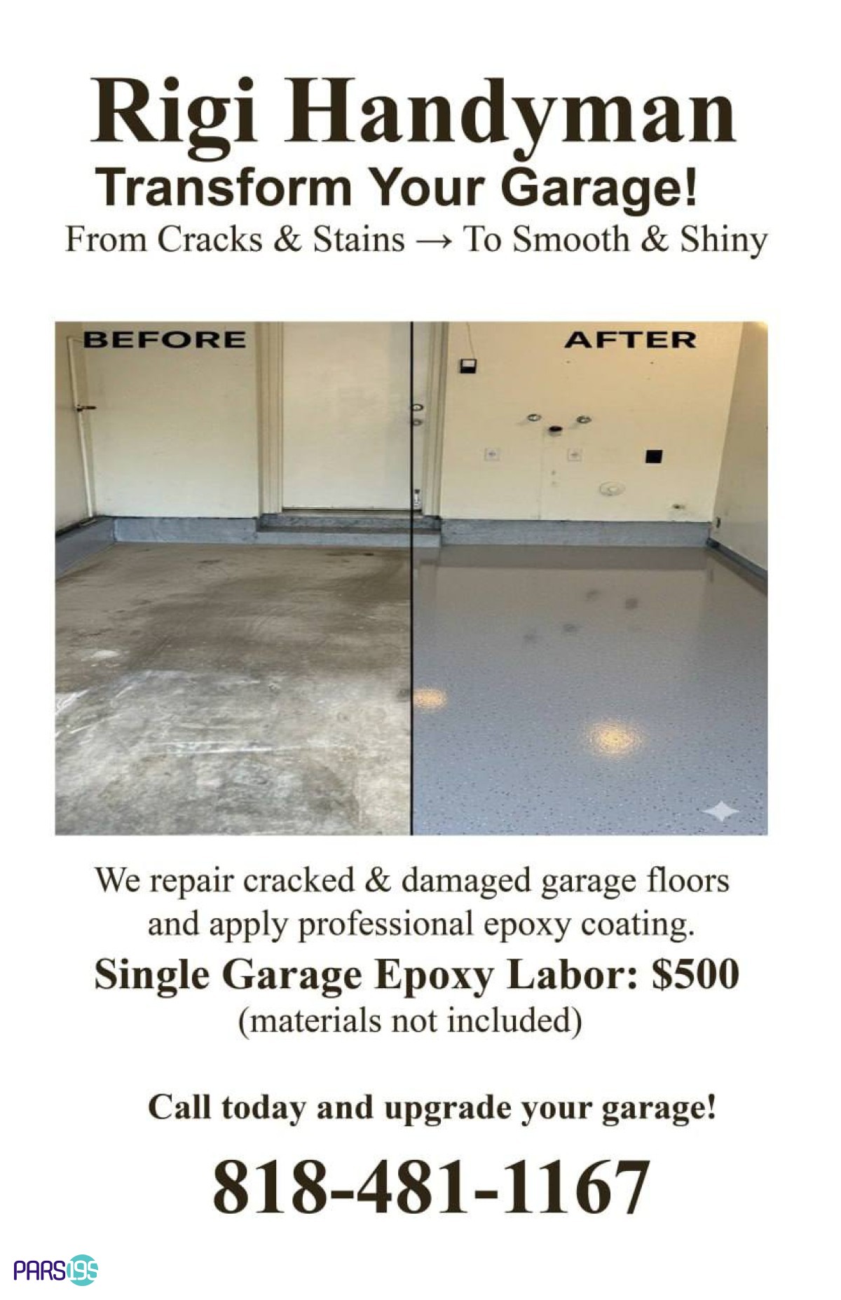 دستمزد اپوکسی تک گاراژ: 500 دلار (مواد شامل نمیشود)